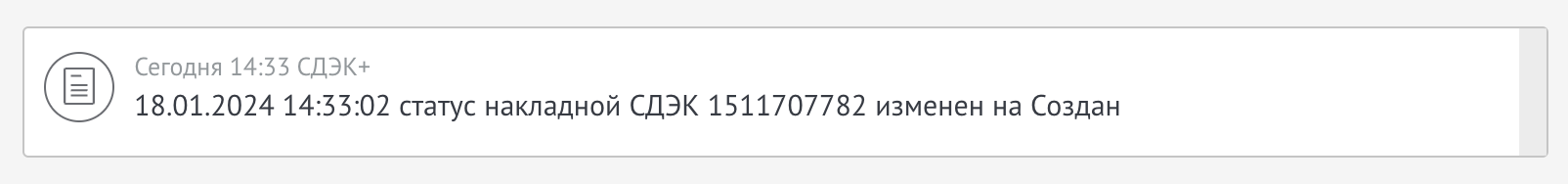 Опция позволяет добавлять в живую ленту информацию о смене статуса СДЭК.