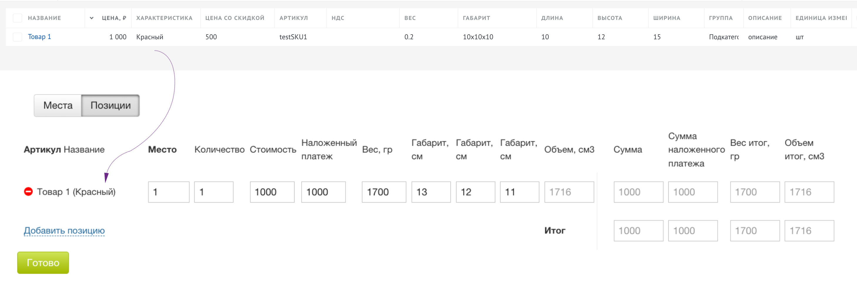 При большом количестве позиций не всегда имеет смысл их пропечатывать в накладной СДЭК, растягивая на несколько листов. В этом случае в накладную выгрузится одна позиция с заданным наименованием (например, "Товары в ассортименте"), с общим весом, габаритом, и стоимостью.