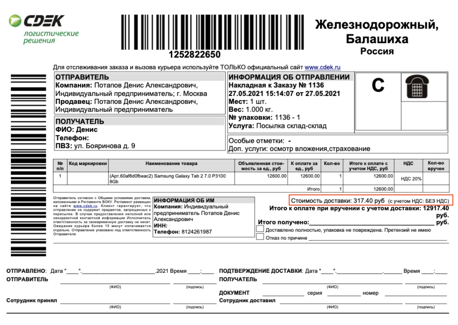 - расчетная величина - фактически оплаченная получателем сумма - сумма услуг СДЭК