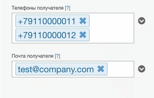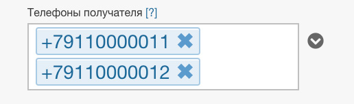 В данном поле можно указать несколько телефонных номеров получателя.